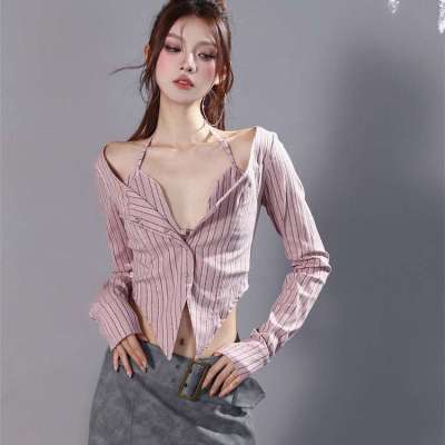 Design Sense Niche Short Long Sleeve V-neck Halter Slim Slimming Hot Girl Top https://forvillfashion.com/pro....duct/22926-design-se