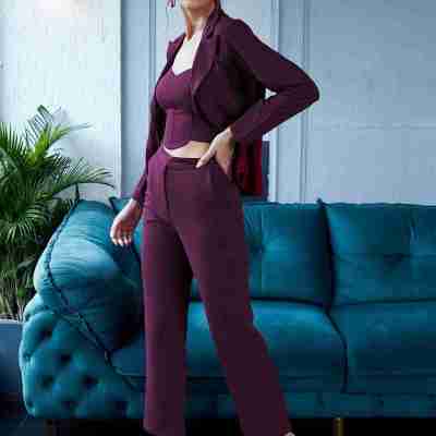 PURPLE JACKET TOP AND TROUSER CO-ORD SET null